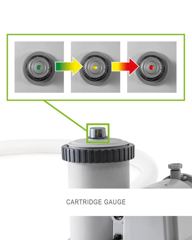 - Water inlet jets for enhanced water flow back into the poolKeep your pool water clean this summer with the Intex� 2,500 GPH Krystal Clear Filter Cartridge Pump! Boasting a pump flow rate of 2,500 gallons (9463litres) per hour and a system flow rate of 1,900 gallons per hour, this pump will circulate and filter the water in your above ground pool to keep water clear and refreshing. Maintenance for this pump is a breeze: simple replace the old cartridge with a new one every 2 weeks. It uses Type "B" Filter Cartridge which should be changed every couple of weeks.- Hydro Aeration� Technology by Intex� - transforming the Above Ground Pool industry, by bringing revolutionary water aeration techniques into your backyard above ground pool.